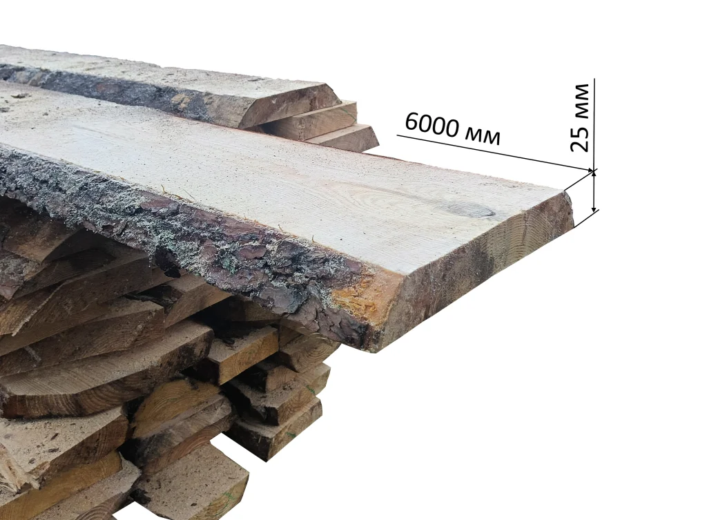 Доска необрезная 25х6000, хвоя, сорт 1-2